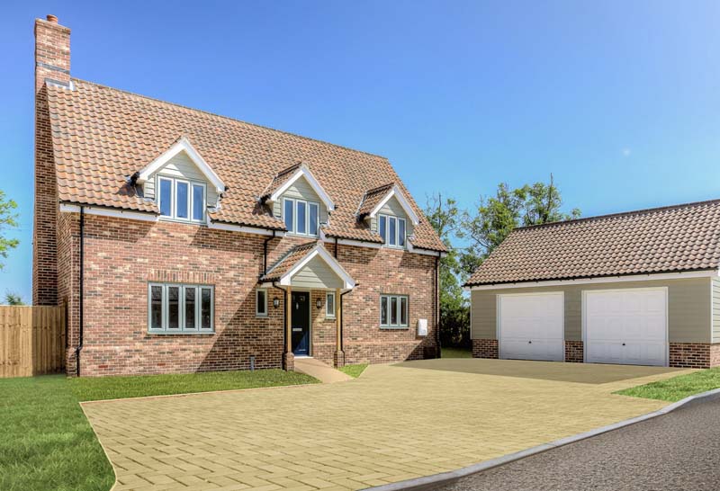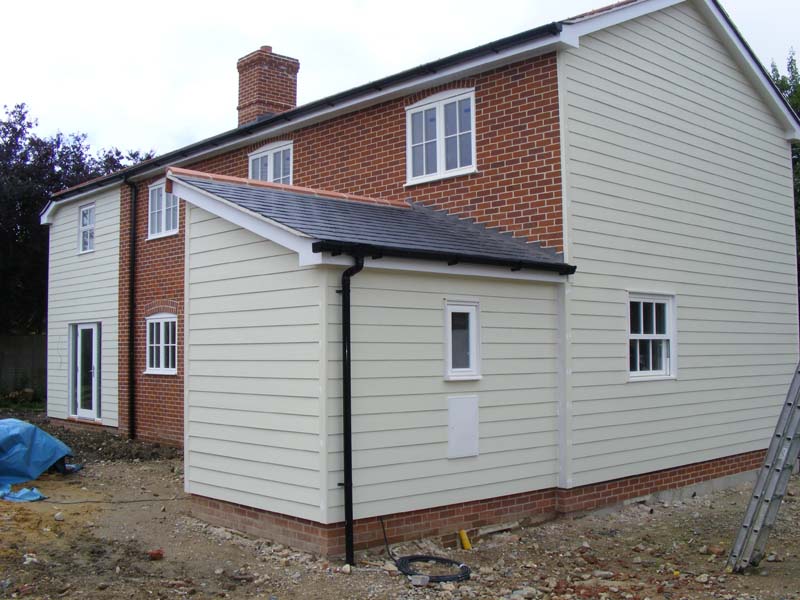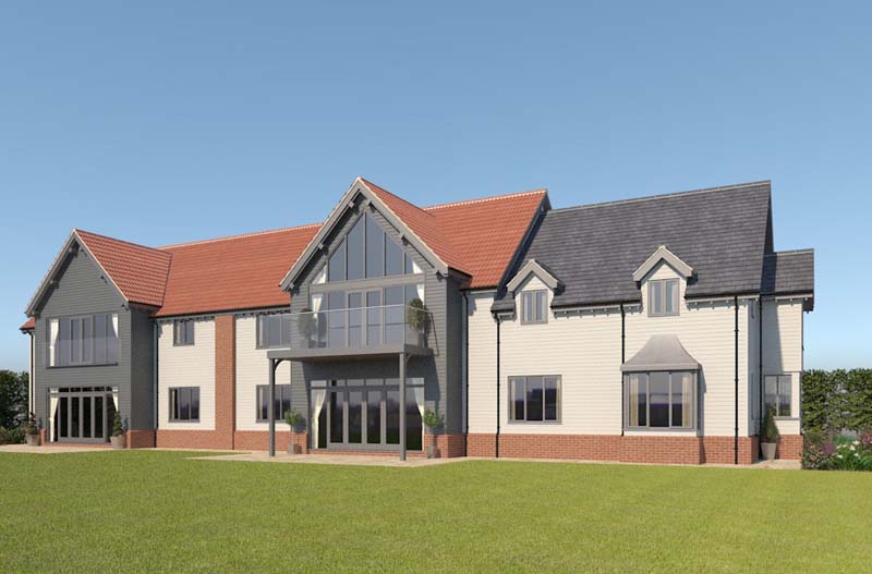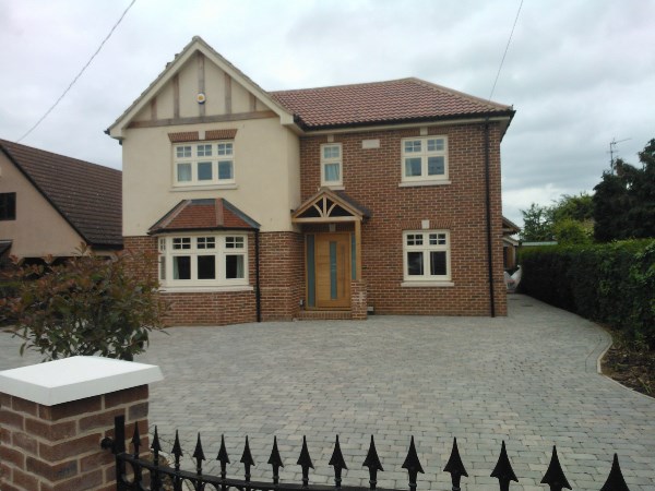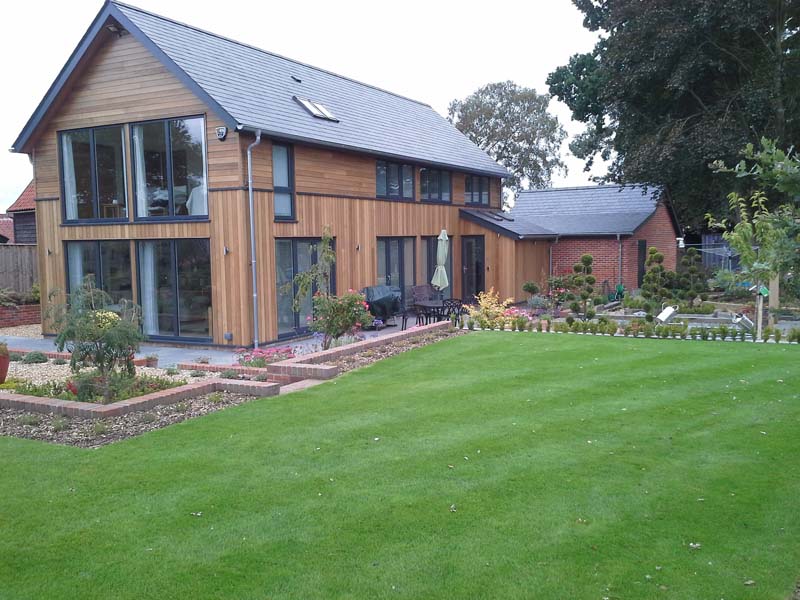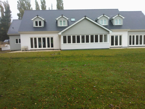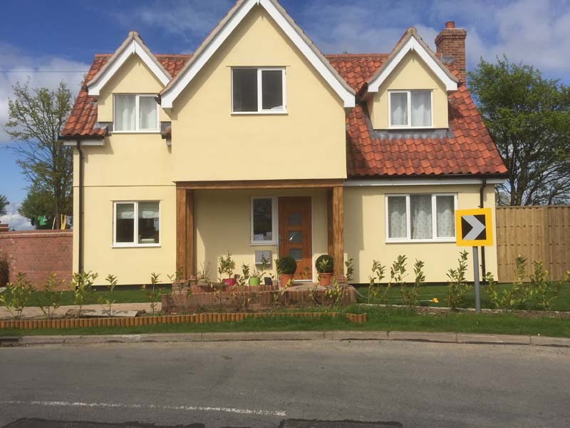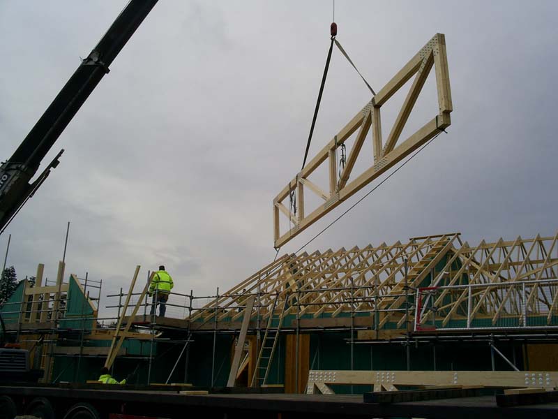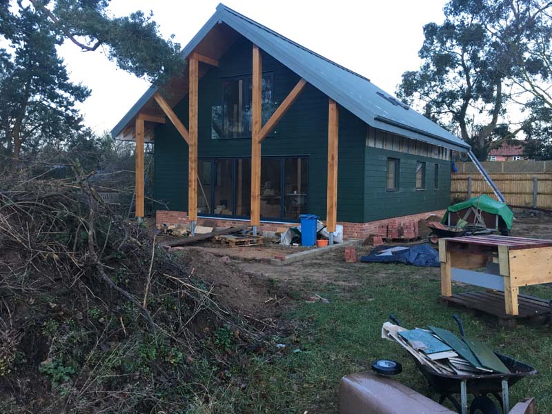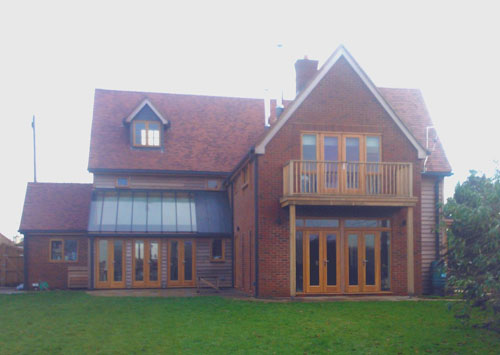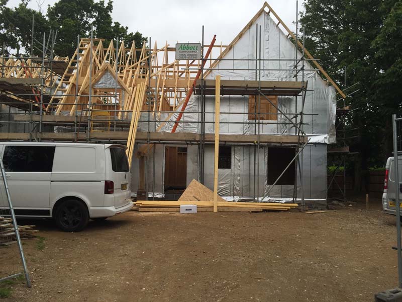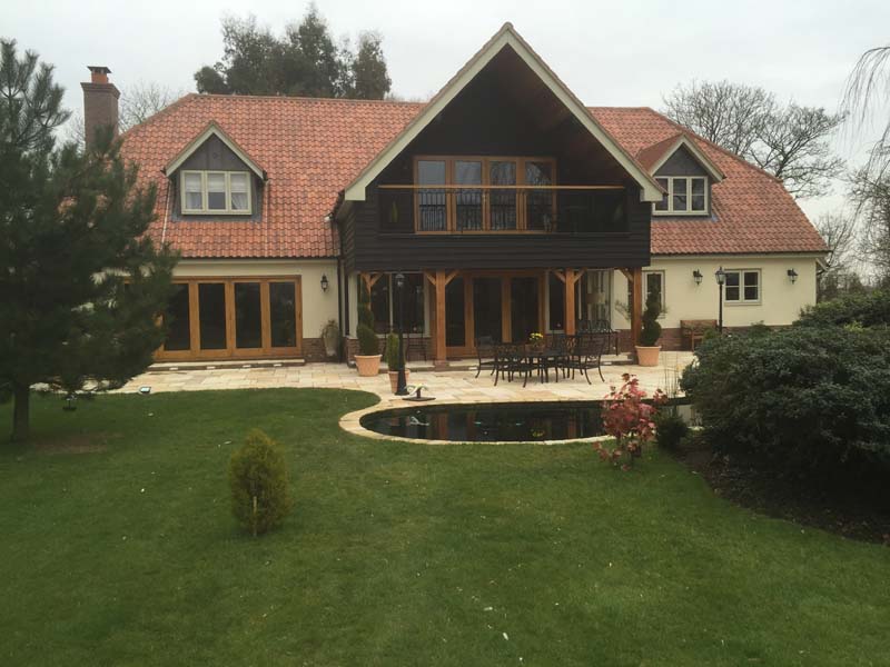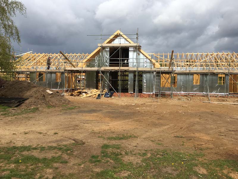 Self build timber frame construction. Comprising of Oak feature truses and oak feature beams.