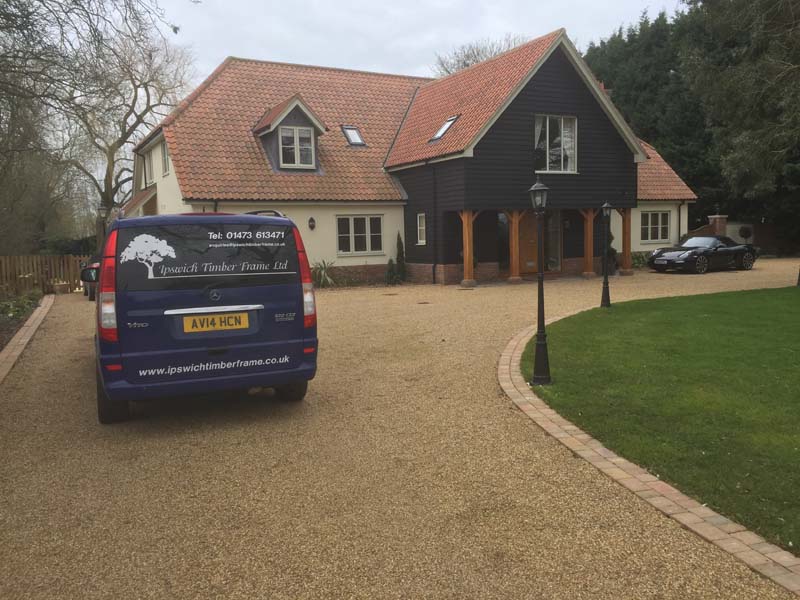 Delivery of timber frame components is transport provided by Ipswich Timber Frame’s. Each vehicle is equipped with an electronic crane. To ensure that our chain of service is completed from the design/manufacturing stage through to arrival on site on time, for our dedicated highly skilled erecting team to commence installation of the timber frame components.