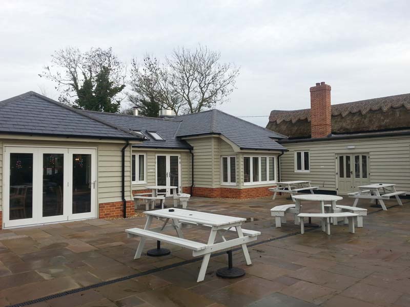 Restuarant timber frame construction. Gluelam feature truses interiors