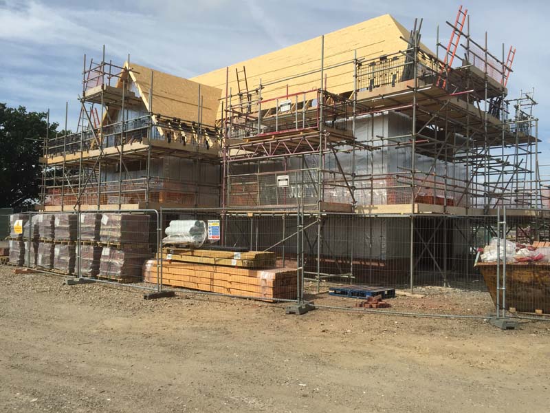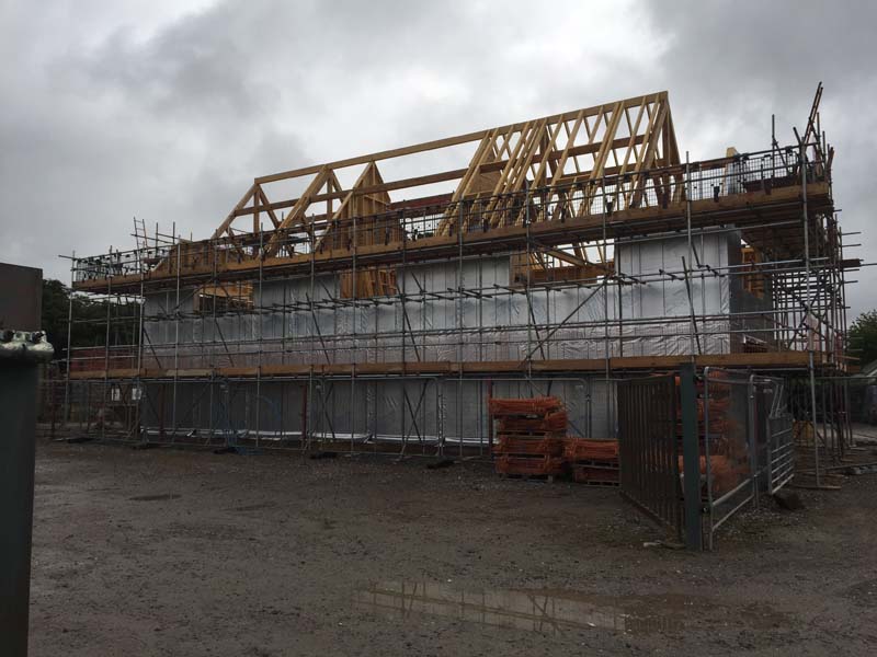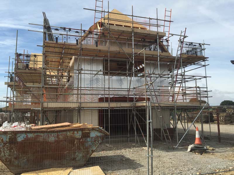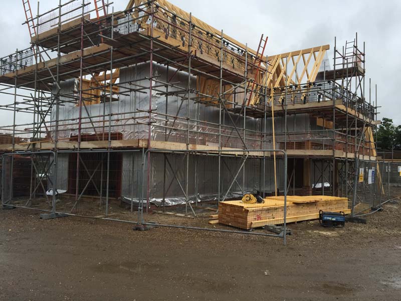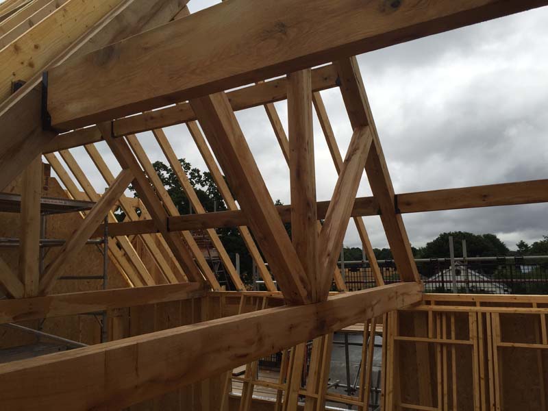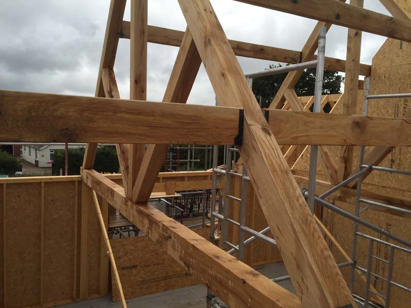 Self build timber frame construction. Comprising of Oak feature truses and oak feature beams.